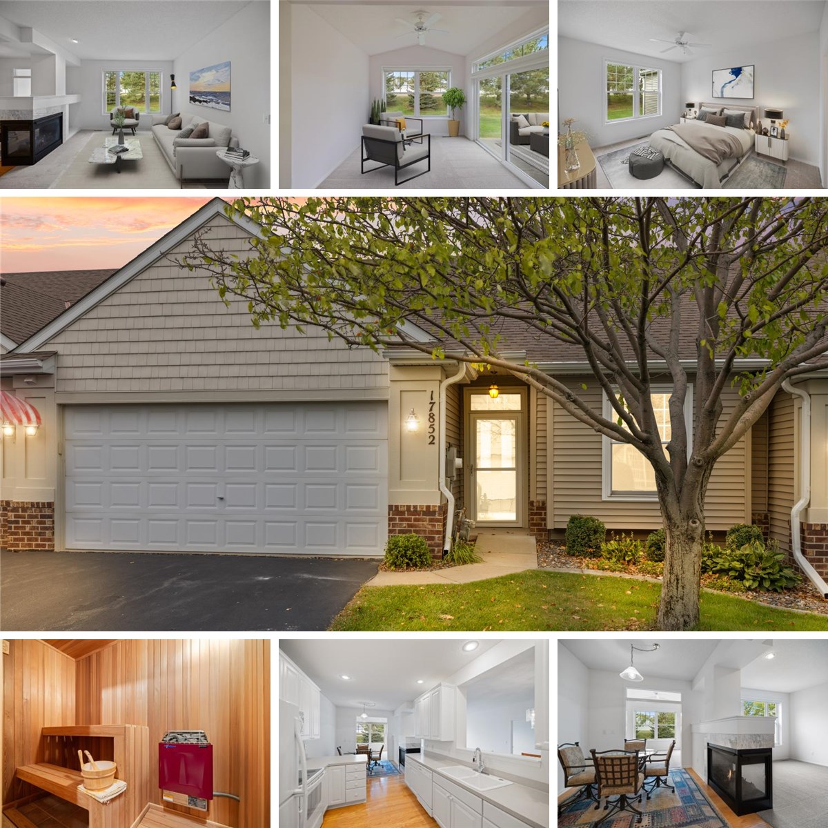 Highly desired Cornerstone Commons 55+ community! Enjoy one-level living with a bright open layout, oversized windows with Hunter-Douglas roller shades, and a vaulted sunroom leading to the 12x12 patio. Cozy 3-sided fireplace warms the kitchen, dining, and living areas. Primary suite features dual vanities, jacuzzi tub, and separate shower. New carpet throughout entire upper level and stairs! Spacious lower level with a large family room, 3rd bedroom, 3/4 bath, and a bonus Finlandia Sauna - perfect for relaxation and rejuvenation! Professionally cleaned and move-in ready—just minutes to shopping and dining!