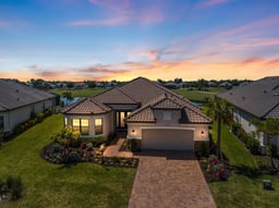 Located in Azario, one of the area's most coveted active communities, where golf is not just a community amenity but a benefit with this GOLF INCLUDED HOME. Positioned on an OVERSIZED HOME SITE, this exceptional residence commands UNOBSTRUCTED WATER AND GOLF COURSE VIEWS from nearly every corner of the home. From the moment you arrive, the setting makes clear this is a property that rarely comes to market. Spanning over 3,200 square feet, this thoughtfully designed 4-bedroom, 3-bath home with a den features an open great room floor plan that feels light, bright, and effortlessly airy. Step outside to the spacious covered lanai — an ideal canvas for a custom pool — where the backdrop of shimmering water and manicured greens makes every evening feel like a private resort experience. Impact glass throughout floods each room with natural light while providing year-round peace of mind. Designer luxury vinyl flooring runs seamlessly through the living areas and bedrooms, complemented by custom trim and woodwork — from coffered and detailed ceilings to wainscoting, crown molding, and wall accents — that elevate every space with a refined, bespoke character. The gourmet kitchen is a true centerpiece, appointed with quartz countertops, a gas cooktop with a custom hood, and finishes that meet the expectations of even the most discerning buyer. The primary suite is a private retreat unto itself, featuring a bay window perfectly framed by tranquil water and fairway views, a spa-inspired ensuite with an oversized walk-in shower with dual shower heads, dual vanities with a dedicated makeup table, and a custom built-in closet with rich wood ceiling detailing. Beyond the walls of this home, Azario's resort-caliber amenity campus delivers a lifestyle few communities can match. The championship golf course — included with your homesite — anchors a collection of offerings that includes a grand clubhouse with a resort-style pool, a full-service fitness center, and a dedicated spa and wellness facility. Pickleball and tennis courts serve as daily gathering points, while on-site dining venues the Bahama Bar and Unleashed Kitchen & Bar provide effortless options for everything from a casual lunch to a relaxed evening out. Robust social programming and active lifestyle events round out a calendar that keeps residents as engaged as they choose to be. The tandem garage accommodates both vehicles and a golf cart — a fitting detail for a home where golf is already part of what you own. Azario sits within Lakewood Ranch, one of the best-selling master-planned communities in the United States, and the address places you minutes from University Town Center's upscale shopping, dining, and entertainment. I-75 provides seamless regional connectivity, and the world-class shores of Siesta Key and Lido Beach are just a short drive away. Sarasota's celebrated arts, culture, and culinary scene further enriches the lifestyle waiting just outside your door. Schedule your private showing and experience Azario living firsthand.